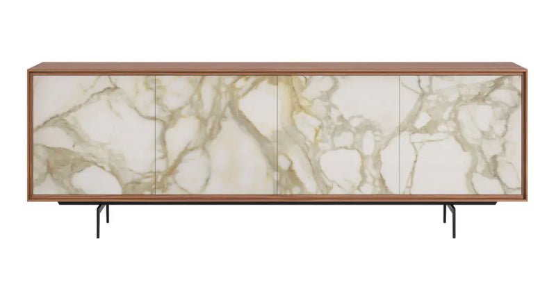 The Aura, a chic blend of sleek design and durability, is destined to elevate your home or office. Its refined ceramic doors exude elegance, while the Aura's frame offers a selection of premium wood veneers or lacquers. Choose from a variety of ceramic finishes for the doors, and we meticulously color-match the interior shelves for a seamlessly cohesive look that caters to your aesthetic preferences. All of our products are available in custom finish and size options. Please reach out through our contact tab to discuss custom designs.