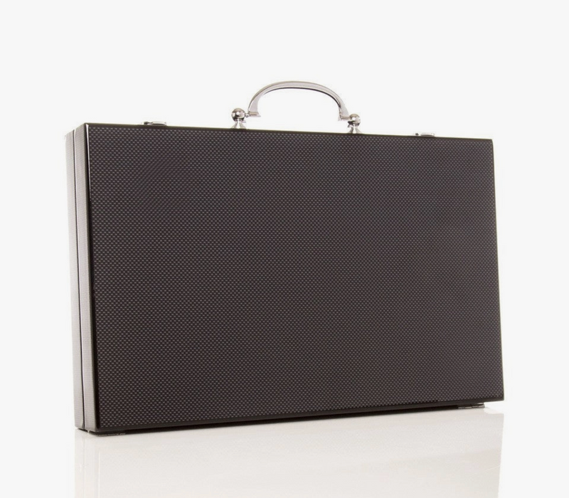 Our game collection featured in a contemporary carbon fiber case. 15" backgammon set. Add to your collection in this custom full carbon fiber case with black velvet lining. Features high gloss wood box with carbon fiber finish in velvet lined game base.