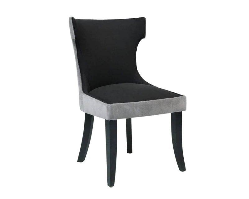 The Conrad side dining chair is a mixed material interpretation of a modern silhouette.