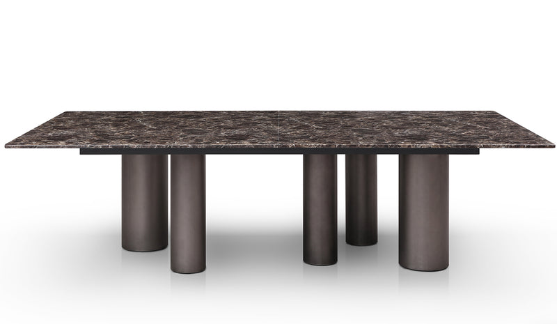 Extraordinary elegance and undulating shapes take the Envie dining table to new heights. Enhanced with eloquently luxurious materials, like fine marble and polished black bronze, it fits confidently in sophisticatedly stylish settings.