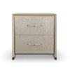 A captivating bedside companion, the Hang Up small nightstand melds the natural beauty of wood with the allure of metal. Features soft-close drawers finished in a broken leaf metallic that recalls the shimmer of a frost-covered, candle lit window. Brushed Gold accents and tapered drawer pulls wrapped in hand-stitched, faux leather add warmth and a luxe finishing touch. Style in pairs, or with our Hang Up large nightstand for added interest and dimension.