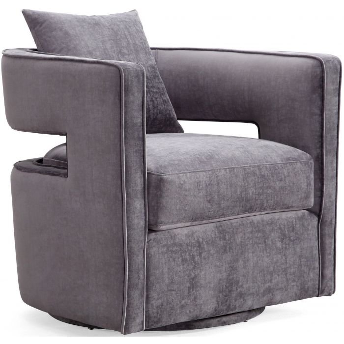 The minimalistic Ken swivel chair is versatile and stylish. A comfortable foam fill makes it as plush and inviting as it looks, while the solid wood frame and legs set a sturdy foundation. This eye-catching chair will add a pop of style to any space. Available in several sumptuous velvet color options.