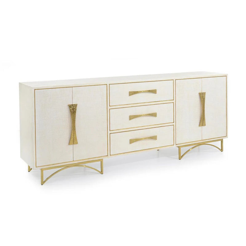 This sideboard features a twin set of double doors with a central bank of three drawers.