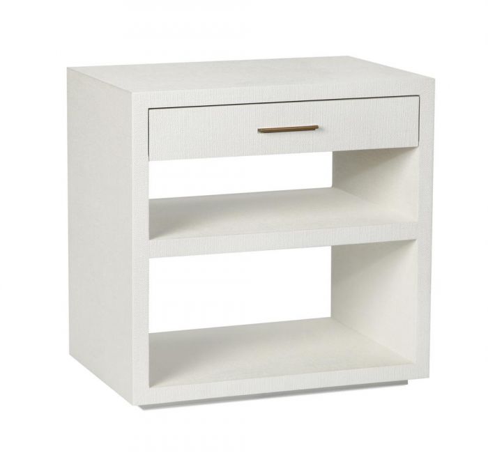 A practical bedside chest manages to retain its chic style when it's composed of hand cast faux linen and an antique brass-finished metal.