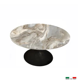 Coffee table 30" ceramic top with Epoxy coated goblet shaped base.Top Color: Calacatta White Opaco Matte, Calacatta Black, Onice Beige, PatagoniaBase Color Option: Anth, Silver, Copper, Base Height Option: 14", 16", 18", 20"