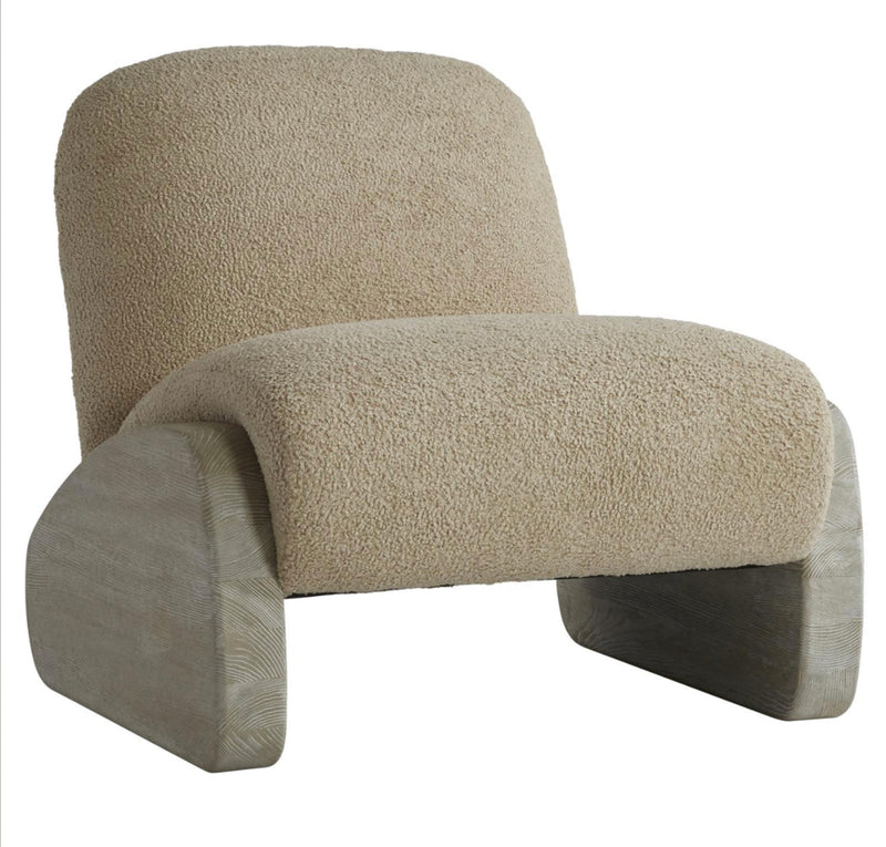 A laid-back style and a curved wood base gives this chair a thoroughly modern design.