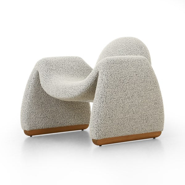 Bring some '70s whimsy into play with a show-stopping accent chair. Made from high-performance fabric in a sandy boucle, dramatic shaping features fashionable folds and comfortable curves atop a minimal oak base. Performance fabrics are specially created to withstand spills, stains, high traffic and wear, ensuring long-term comfort and unmatched durability.