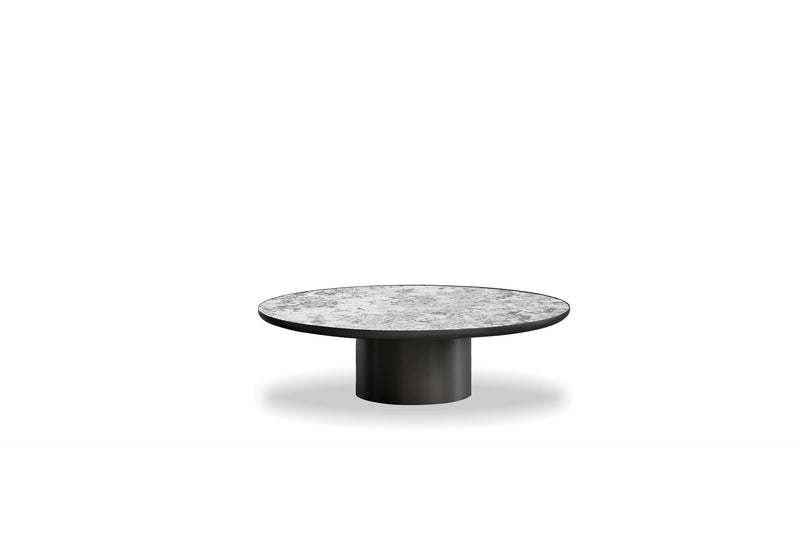 The Rowan Collection features a stunning Alask white lappato ceramic top and a chic, deep brown powder coated base.
