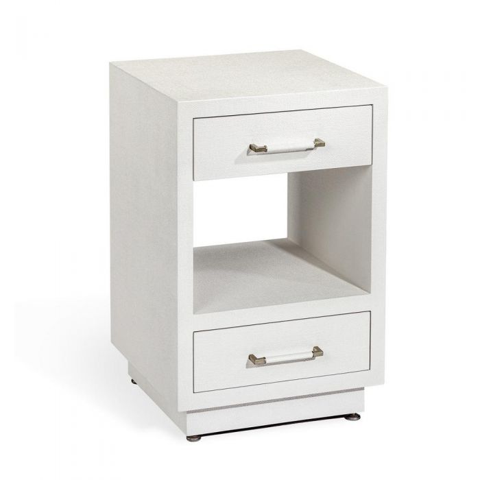 The clean lines of the Taylor Small Bedside Chest are transformed into a statement piece thanks to a surface of natural faux linen and metal pulls.