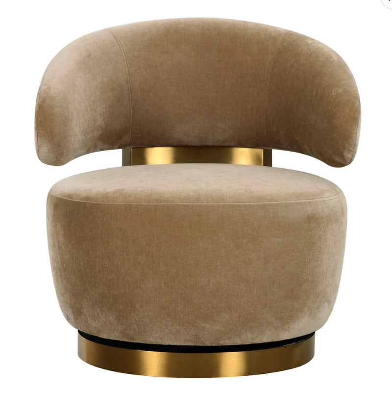 Plush, stylish, and bold, the Austin chair is an undeniably unique piece. Its soft and cozy recycled fabric upholstery complemented with brushed gold finishes is timeless and inviting. This eye-catching chair will add a pop of style to any space.